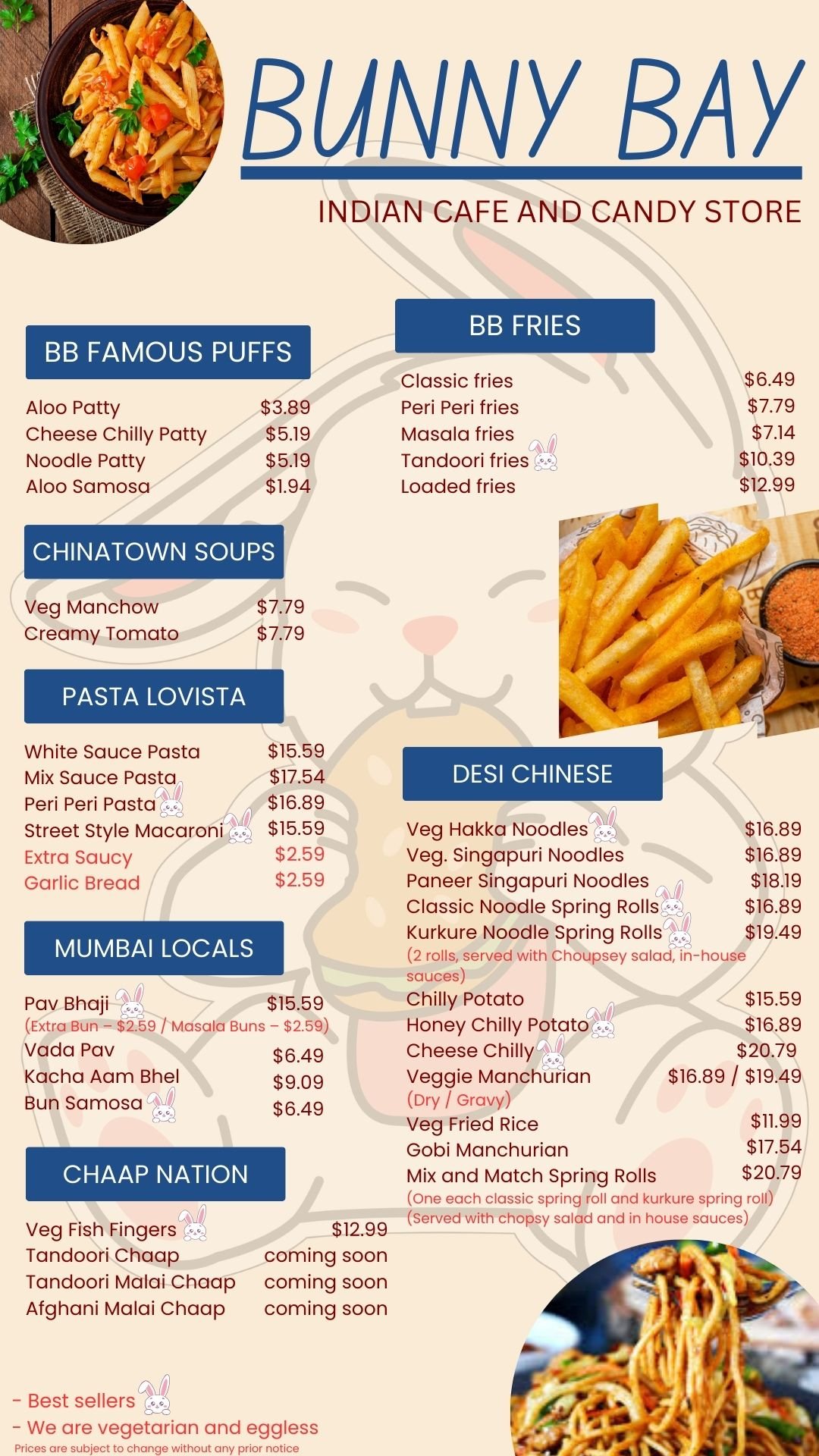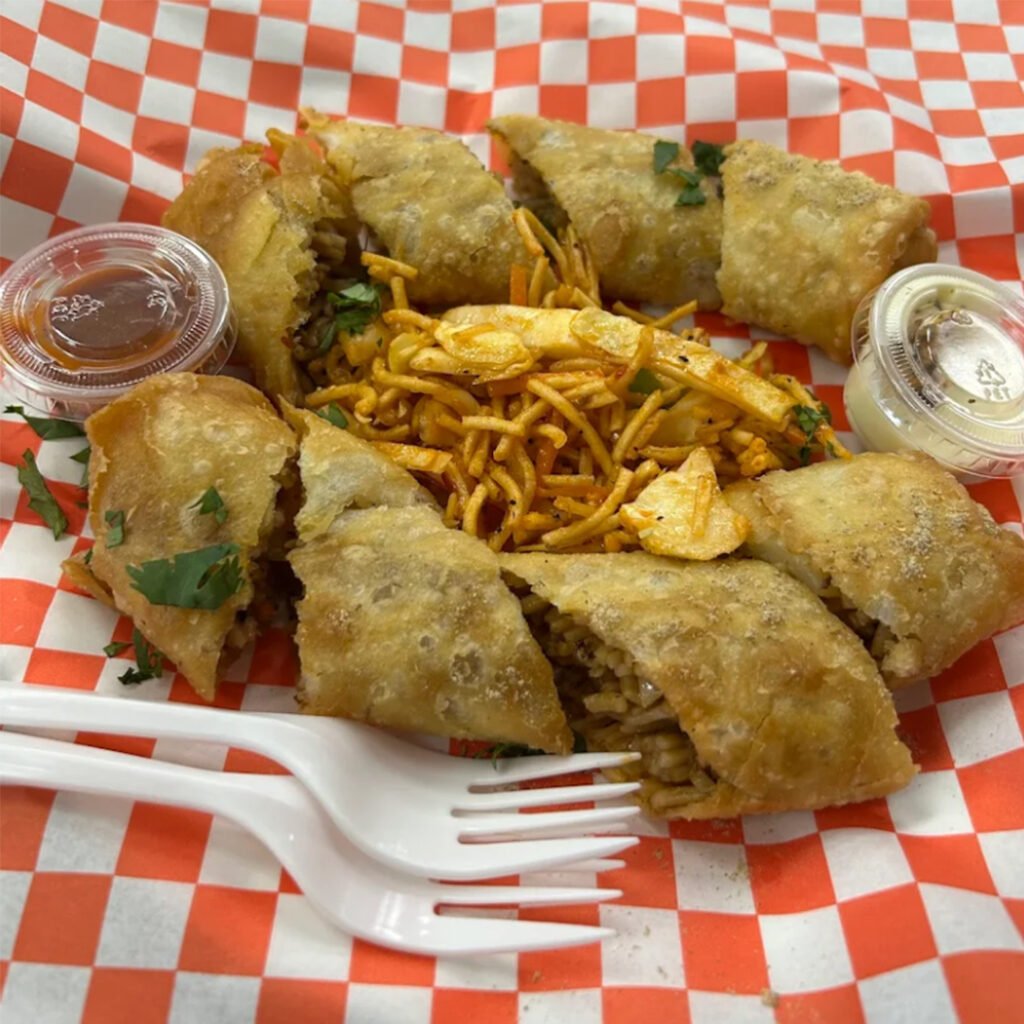 - Burger patty momos spring roll macroni pasta nutri kulcha